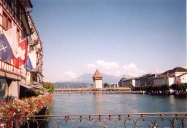 ルツェルンで一番有名な そして貯水塔 カペル橋は1998年に焼失、